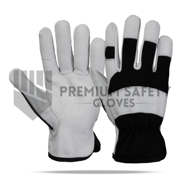 CHARACTERISTICS: Premium Goat grain leather palm, black Fourway fabric back, breathable, keystone thumb, Shirred elastic back ensures a snug fit, out-seam index finger. Hooded fingertips, added knuckle protection, fabric patch on thumb, open cuffs provides an easy slip-on and off action.