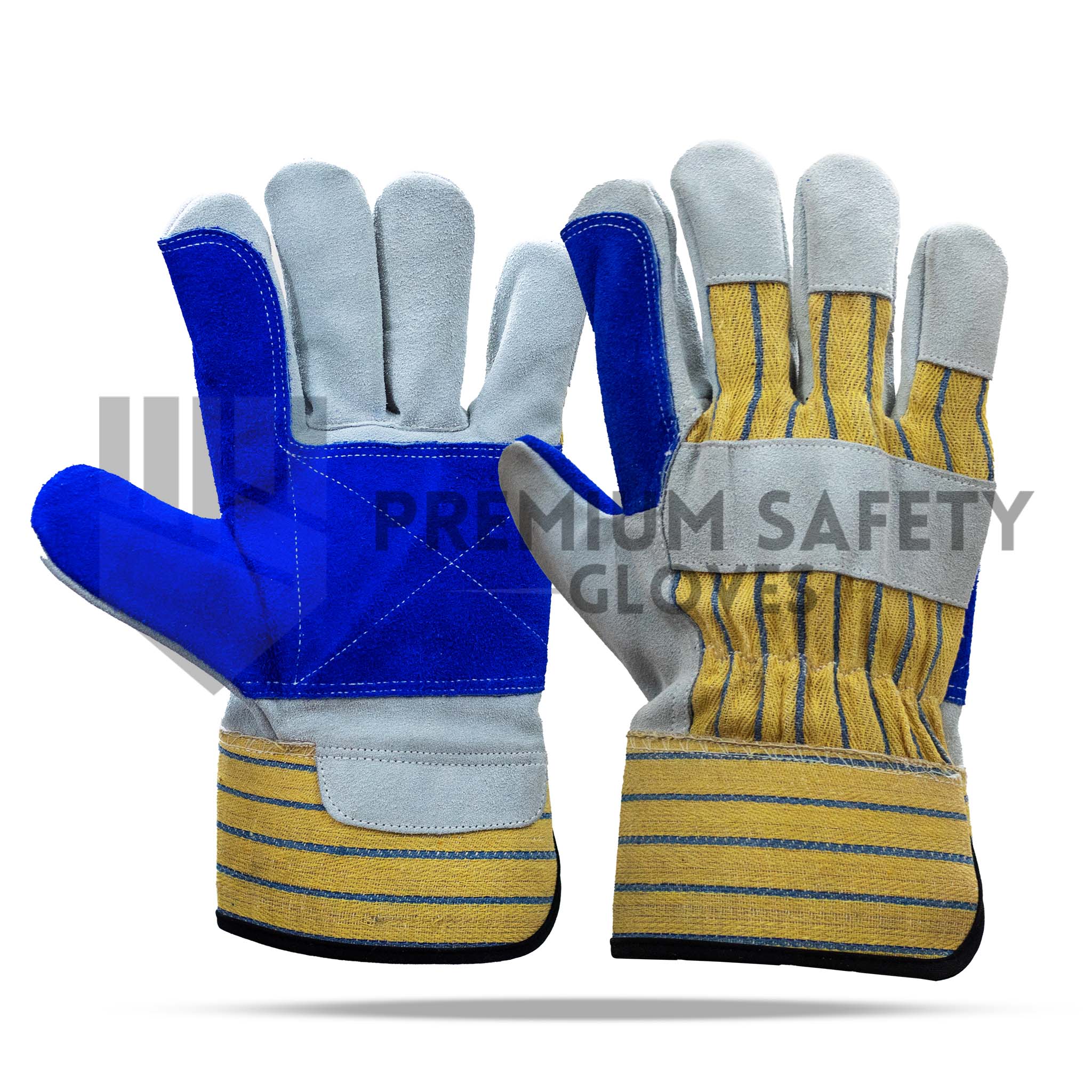 CHARACTERISTICS: Natural Cow split leather palm, yellow cotton drill fabric back, Fleeced Lined palm, Reinforced double palm, reinforced index finger and thumb. Wing thumb, Out-seam index finger, hooded fingertips, Knuckle protection, Pulse protection, Shirred elastic back ensures a snug fit, Rubberized cuff offers better protection.